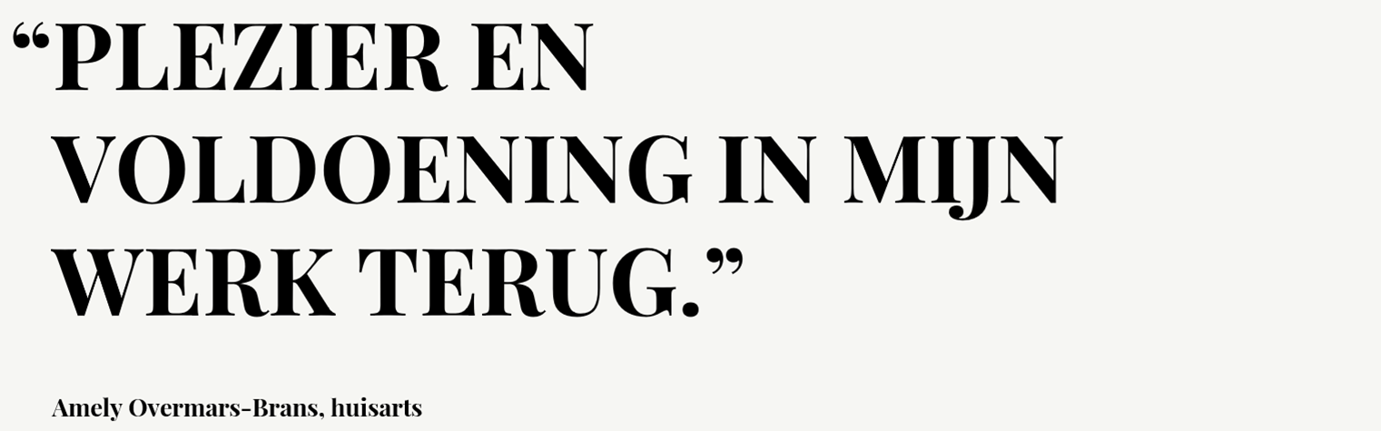 Ik heb meer plezier in mijn werk en individuele consulten. Er is meer rust en ik voel me minder gejaagd. Ik ben nu een ontspannener collega en dokter.